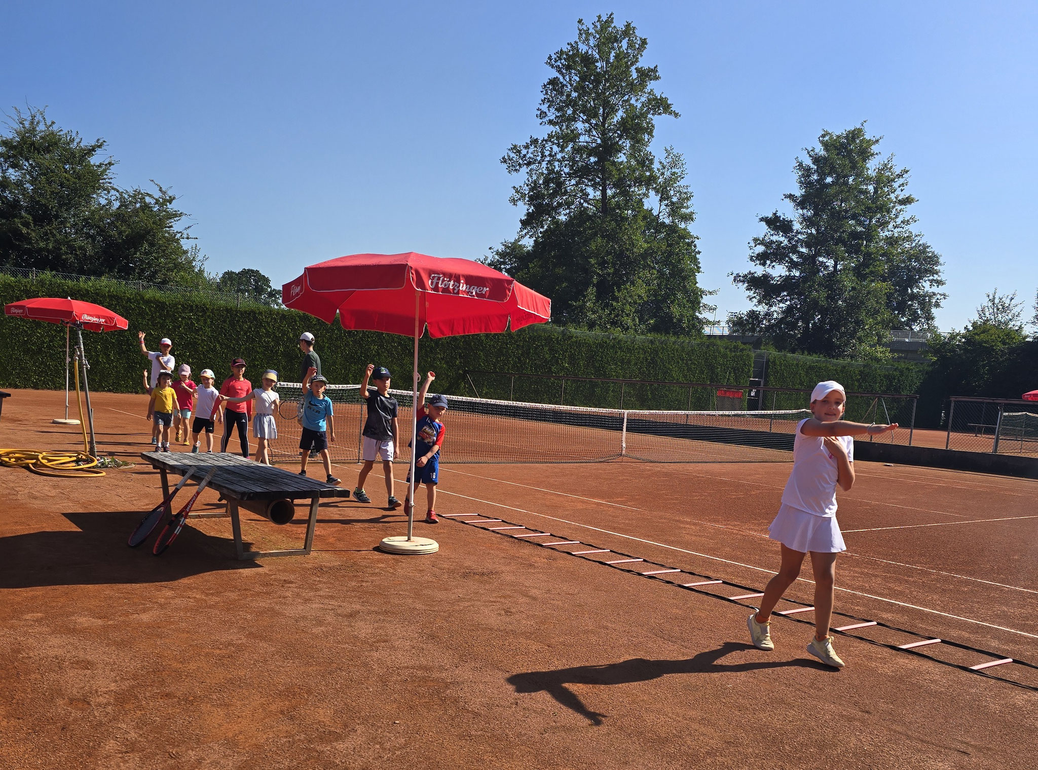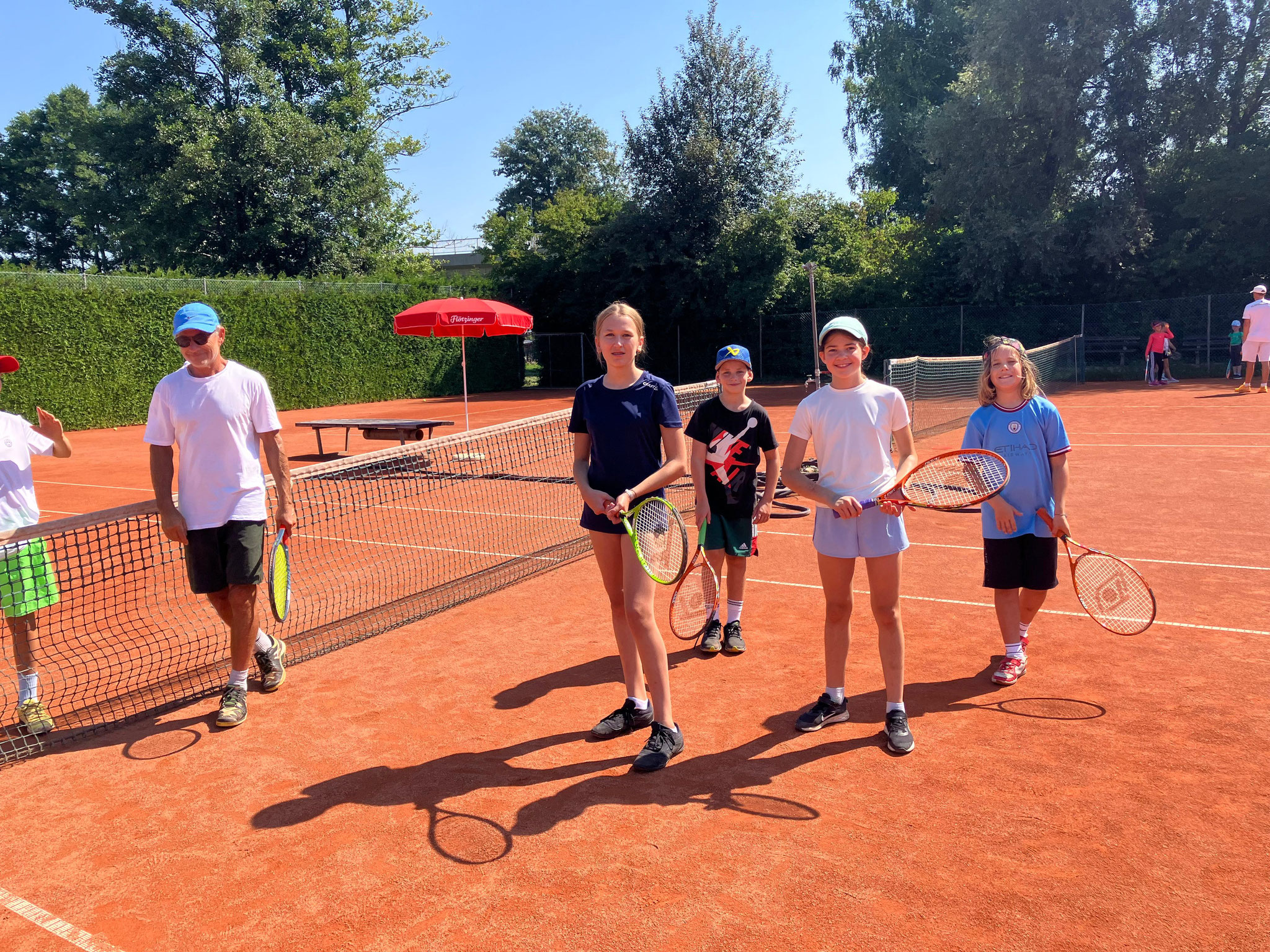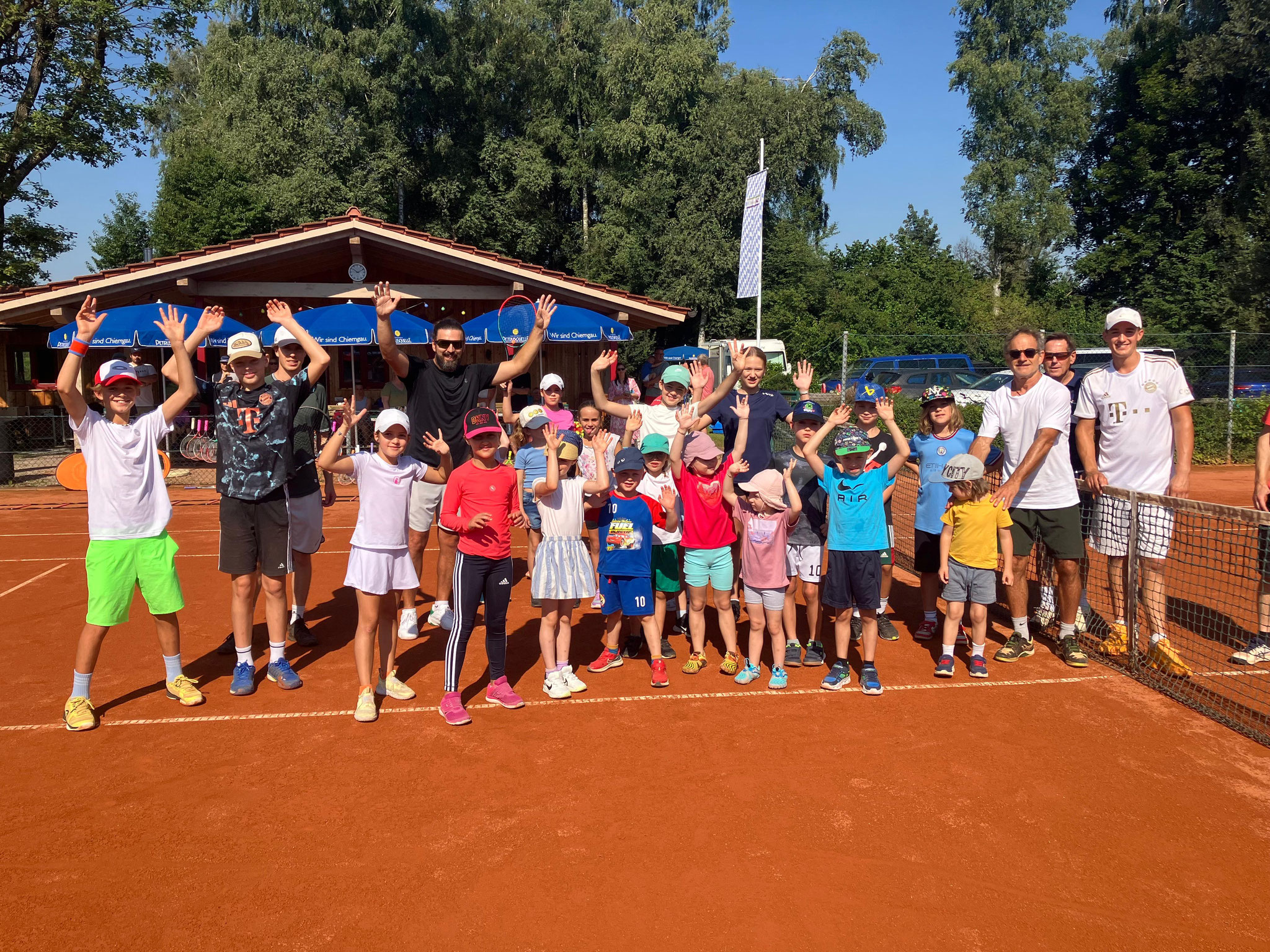 Bei super Tenniswetter fand am 9.8. das Tennis-Schnuppertraining im Rahmen des Ferienprogramms statt. Ziel war es, Interesse für eine fortlaufende Teilnahme und die Begeisterung für Tennis zu wecken. 25 Kinder nahmen das Angebot gerne an. Die kleinen Sportler wurden auf vier Plätzen von mehreren Trainern, Vereinsmitgliedern & Helfern betreut. Maxi, Mathias, Petr, Igor + Peter, Klaus, Werner und Hans stellten sich der Aufgabe ebenso, wie auch die Jugendspieler Max und Kili. Nach der obligatorischen Aufwärmphase wurden Grundbewegungen und Ballgefühl trainiert. Weiterhin durchliefen die Teilnehmer spielerisch Koordinationsübungen und absolvierten kleinere Matches.
