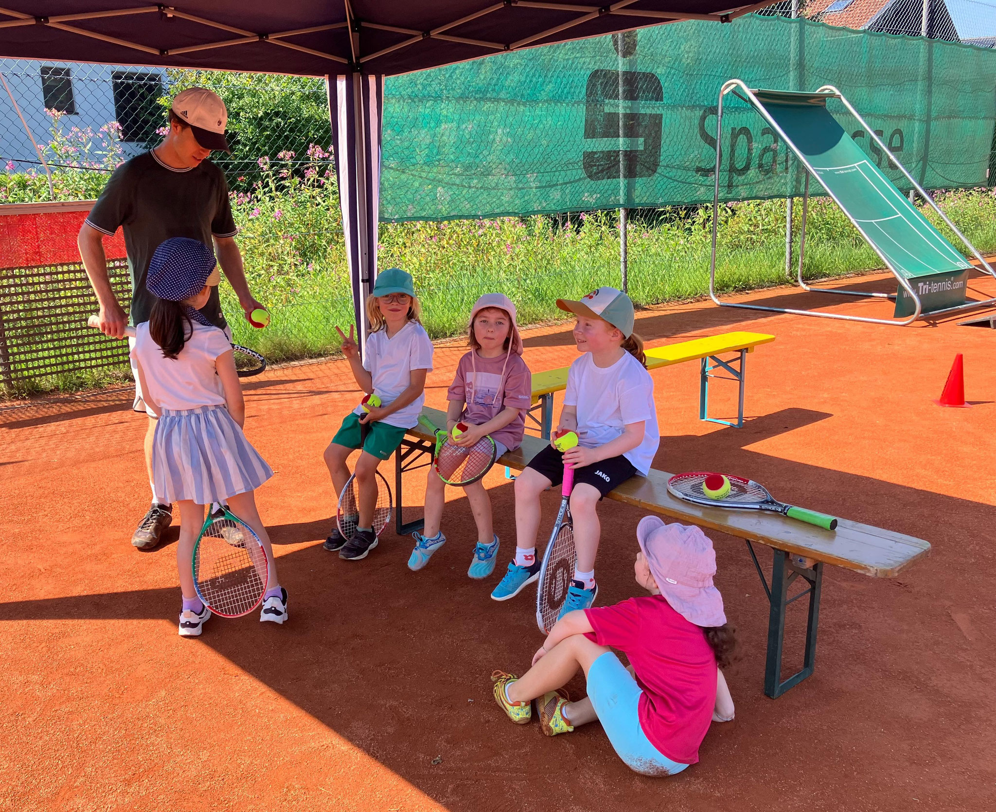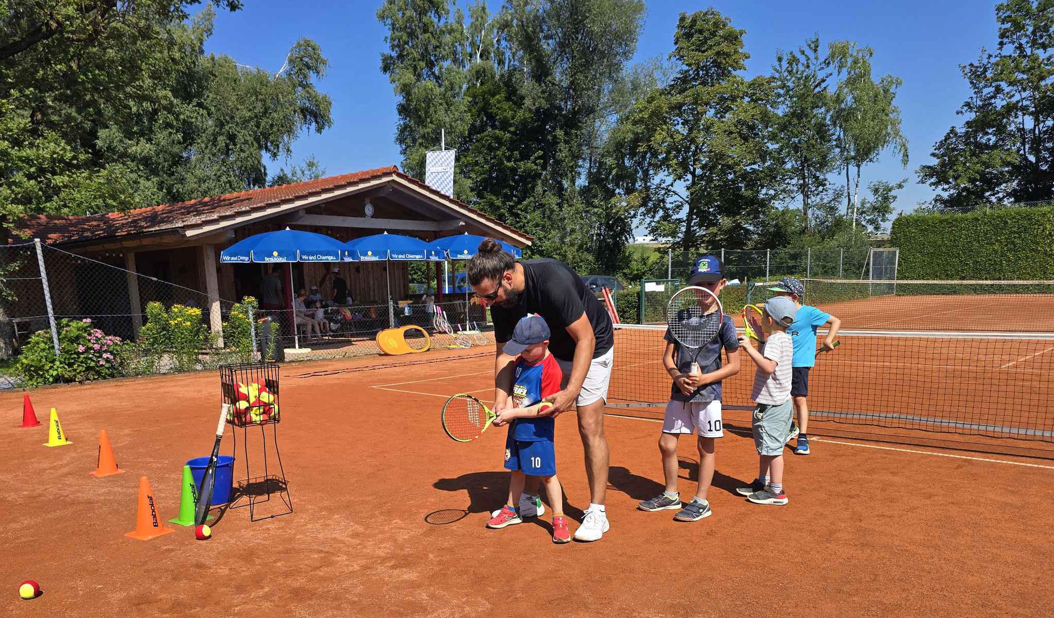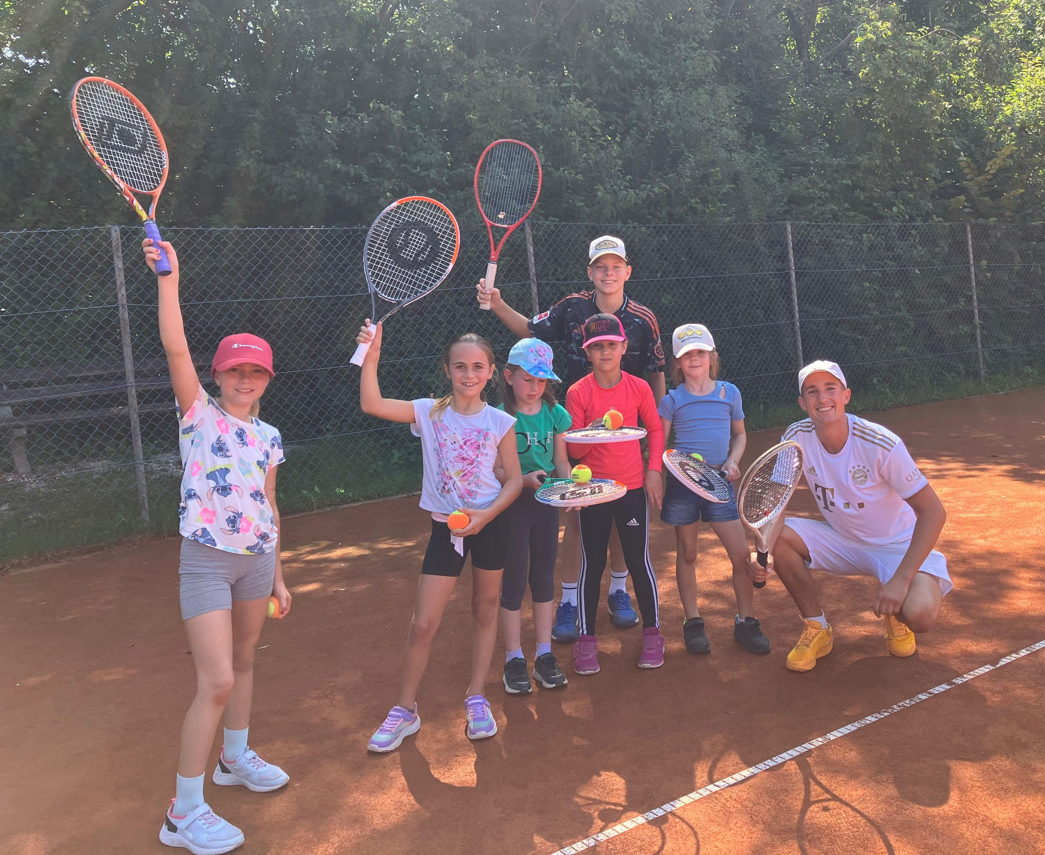 Bei super Tenniswetter fand am 9.8. das Tennis-Schnuppertraining im Rahmen des Ferienprogramms statt. Ziel war es, Interesse für eine fortlaufende Teilnahme und die Begeisterung für Tennis zu wecken. 25 Kinder nahmen das Angebot gerne an. Die kleinen Sportler wurden auf vier Plätzen von mehreren Trainern, Vereinsmitgliedern & Helfern betreut. Maxi, Mathias, Petr, Igor + Peter, Klaus, Werner und Hans stellten sich der Aufgabe ebenso, wie auch die Jugendspieler Max und Kili. Nach der obligatorischen Aufwärmphase wurden Grundbewegungen und Ballgefühl trainiert. Weiterhin durchliefen die Teilnehmer spielerisch Koordinationsübungen und absolvierten kleinere Matches.